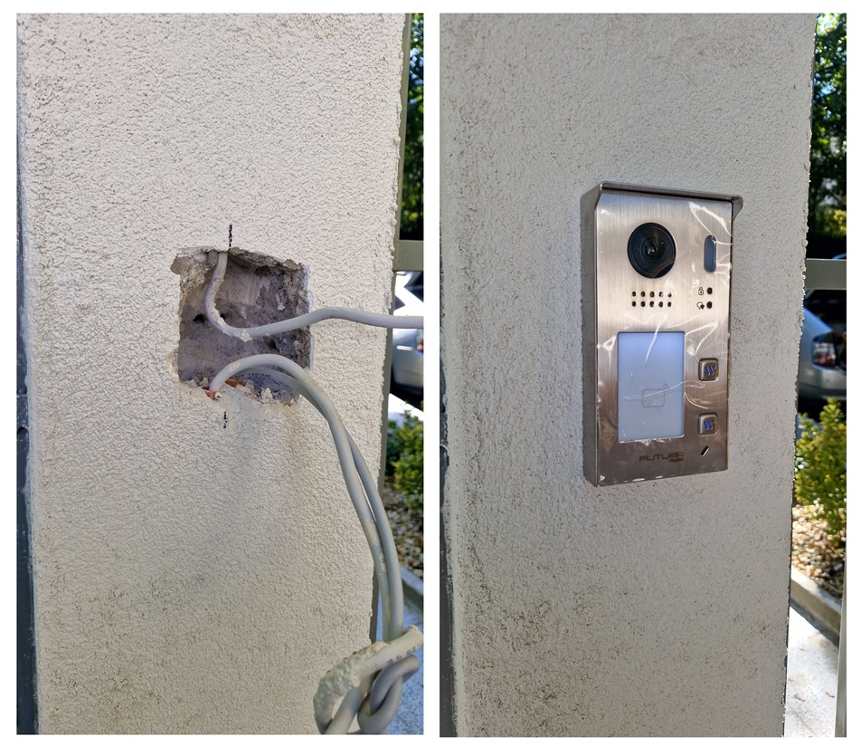Emellett az ügyfél kérésére elektromos zárat is beépítettünk. A kaputelefon rendszer így nemcsak kommunikációra alkalmas, hanem a biztonság és a kényelem szempontjából is kiemelkedő megoldást nyújt.